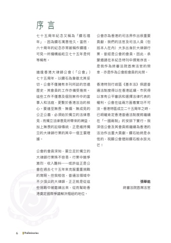 6 Preliminaries%u4e03%u5341%u4e94%u5468%u5e74%u7d00%u5ff5%u53c8%u7a31%u70ba%u300c%u947d%u77f3%u79a7%u5e74%u300d%uff0c%u56e0%u70ba%u947d%u77f3%u5bd3%u610f%u6046%u4e45%u3002%u7576%u7136%uff0c%u516d%u5341%u5468%u5e74%u7684%u7d00%u5ff5%u4ea6%u5e38%u88ab%u7a31%u4f5c%u947d%u79a7%uff0c%u53ef%u898b%u4e00%u6240%u6a5f%u69cb%u80fd%u5c79%u7acb%u4e03%u5341%u4e94%u5e74%u662f%u4f55%u7b49%u7a00%u6709%u3002%u9069%u9022%u9999%u6e2f%u5927%u5f8b%u5e2b%u516c%u6703 (%u300c%u516c%u6703%u300d) %u4e03%u5341%u4e94%u5468%u5e74%uff0c%u4ee5%u947d%u77f3%u70ba%u8c61%u5fb5%u5c24%u5176%u59a5%u5207%u3002%u516c%u6703%u4e0d%u50c5%u64c1%u6709%u672c%u520a%u6240%u8a8c%u7684%u60a0%u9060%u6b77%u53f2%uff0c%u5176%u6703%u54e1%u7684%u5de5%u4f5c%u4ea6%u5099%u53d7%u63a8%u5d07%u3002%u9019%u4e9b%u5de5%u4f5c%u4e0d%u50c5%u60e0%u53ca%u500b%u5225%u6848%u4ef6%u4e2d%u7684%u7576%u4e8b%u4eba%u548c%u6cd5%u5ead%uff0c%u66f4%u7e6b%u65bc%u9999%u6e2f%u6cd5%u6cbb%u7684%u6838%u5fc3%u3002%u8981%u9054%u81f3%u7121%u754f%u3001%u7121%u504f%u3001%u7121%u6210%u898b%u7684%u516c%u6b63%u516c%u7fa9%uff0c%u5fc5%u9808%u59cb%u65bc%u7368%u7acb%u7684%u6cd5%u5f8b%u610f%u898b%uff1b%u800c%u7368%u7acb%u6cd5%u5f8b%u610f%u898b%u6240%u5e36%u4f86%u7684%u88e8%u76ca%uff0c%u52a0%u4e0a%u7121%u754f%u7684%u8a1f%u8faf%u50b3%u7d71%uff0c%u6b63%u662f%u7dad%u6301%u7368%u7acb%u7684%u5927%u5f8b%u5e2b%u884c%u696d%u7684%u5176%u4e2d%u4e00%u500b%u4e3b%u8981%u7406%u64da%u3002%u516c%u6703%u7684%u6703%u54e1%u6df1%u77e5%uff0c%u8981%u7acb%u8db3%u65bc%u7368%u7acb%u7684%u5927%u5f8b%u5e2b%u884c%u696d%u6b8a%u4e0d%u5bb9%u6613%u3002%u884c%u696d%u4e2d%u7af6%u722d%u6fc0%u70c8%u3001%u6536%u5165%u96e3%u6599%u2500%u2500%u6216%u8a31%u9019%u6b63%u662f%u516c%u6703%u5728%u904e%u53bb%u4e03%u5341%u4e94%u5e74%u4f86%u514b%u670d%u91cd%u91cd%u6311%u6230%u7684%u5beb%u7167%u3002%u4f46%u6211%u76f8%u4fe1%uff0c%u666e%u901a%u6cd5%u9818%u57df%u4e2d%u4e0d%u5c11%u9802%u5c16%u7684%u5927%u5f8b%u5e2b%uff0c%u6b63%u6b63%u5c31%u662f%u5f9e%u9019%u4e9b%u6311%u6230%u4e2d%u88ab%u78e8%u7df4%u51fa%u4f86%uff0c%u5f9e%u800c%u5e6b%u52a9%u9999%u6e2f%u5960%u5b9a%u570b%u969b%u722d%u8b70%u89e3%u6c7a%u6a1e%u7d10%u7684%u5730%u4f4d%u3002%u516c%u6703%u4ea6%u70ba%u9999%u6e2f%u7684%u53f8%u6cd5%u754c%u4f5c%u51fa%u5f88%u91cd%u8981%u8ca2%u737b%uff0c%u6211%u5011%u7684%u6cd5%u5b98%u53ca%u53f8%u6cd5%u4eba%u54e1%uff08%u5305%u62ec%u672c%u4eba%u5728%u5167%uff09%u5927%u591a%u51fa%u8eab%u65bc%u5927%u5f8b%u5e2b%u884c%u696d%uff0c%u66fe%u7d93%u662f%u516c%u6703%u7684%u6703%u54e1%u3002%u56e0%u6b64%uff0c%u627f%u8499%u9080%u8acb%u5728%u672c%u7d00%u5ff5%u7279%u520a%u4e2d%u64b0%u5beb%u5e8f%u8a00%uff0c%u662f%u6211%u4f5c%u70ba%u7d42%u5be9%u6cd5%u9662%u9996%u5e2d%u6cd5%u5b98%u7684%u69ae%u5e78%uff0c%u4ea6%u662f%u4f5c%u70ba%u516c%u6703%u524d%u6703%u54e1%u7684%u5149%u69ae%u3002%u9999%u6e2f%u7279%u5225%u884c%u653f%u5340%u300a%u57fa%u672c%u6cd5%u300b%u4fdd%u8b49%u666e%u901a%u6cd5%u5236%u5ea6%u5f97%u4ee5%u5728%u9999%u6e2f%u5ef6%u7e8c%uff0c%u5e02%u6c11%u5f97%u4ee5%u4eab%u6709%u516c%u5e73%u5be9%u8a0a%u548c%u9078%u64c7%u6cd5%u5f8b%u4ee3%u8868%u7684%u6b0a%u5229%u3002%u516c%u6703%u5728%u9019%u5169%u65b9%u9762%u7740%u5be6%u529f%u4e0d%u53ef%u6c92%u3002%u9999%u6e2f%u7279%u5340%u6210%u7acb%u4e8c%u5341%u4e94%u5468%u5e74%u4e4b%u6642%uff0c%u5df2%u660e%u78ba%u80af%u5b9a%u9999%u6e2f%u666e%u901a%u6cd5%u5236%u5ea6%u5c07%u7e7c%u7e8c%u5728%u300c%u4e00%u570b%u5169%u5236%u300d%u7684%u5b89%u6392%u4e0b%u5be6%u884c%u3002%u6211%u6df1%u4fe1%u516c%u6703%u53ca%u5176%u6703%u54e1%u5c07%u7e7c%u7e8c%u70ba%u9999%u6e2f%u7684%u6cd5%u6cbb%u4f5c%u51fa%u91cd%u5927%u8ca2%u737b%u3002%u947d%u77f3%u59cb%u7d42%u662f%u6c38%u6046%u7684%uff0c%u795d%u9858%u516c%u6703%u7336%u5982%u947d%u77f3%u822c%u6c38%u653e%u5149%u8292%uff01%u5f35%u8209%u80fd%u7d42%u5be9%u6cd5%u9662%u9996%u5e2d%u6cd5%u5b98%u5e8f%u2002 %u8a00