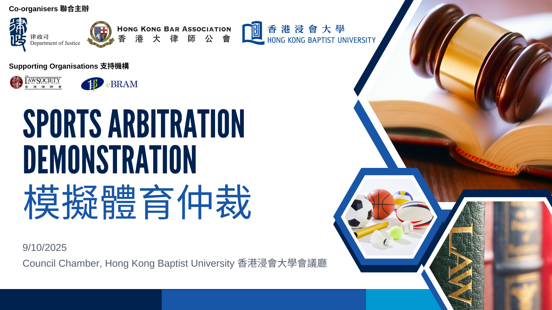 香港大律師公會體育及運動法專業委員會、律政司及香港浸會大學聯合主辦模擬體育仲裁活動,向體育界及法律界推廣解決體育爭議的替代方法。